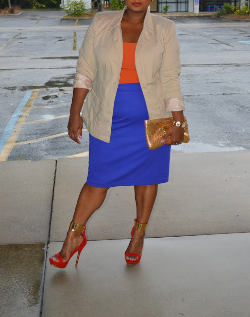 divine heaven t-shirt (Praise Clothing LA. Com) blazer (Thrifted ) stripe skirt (Express)